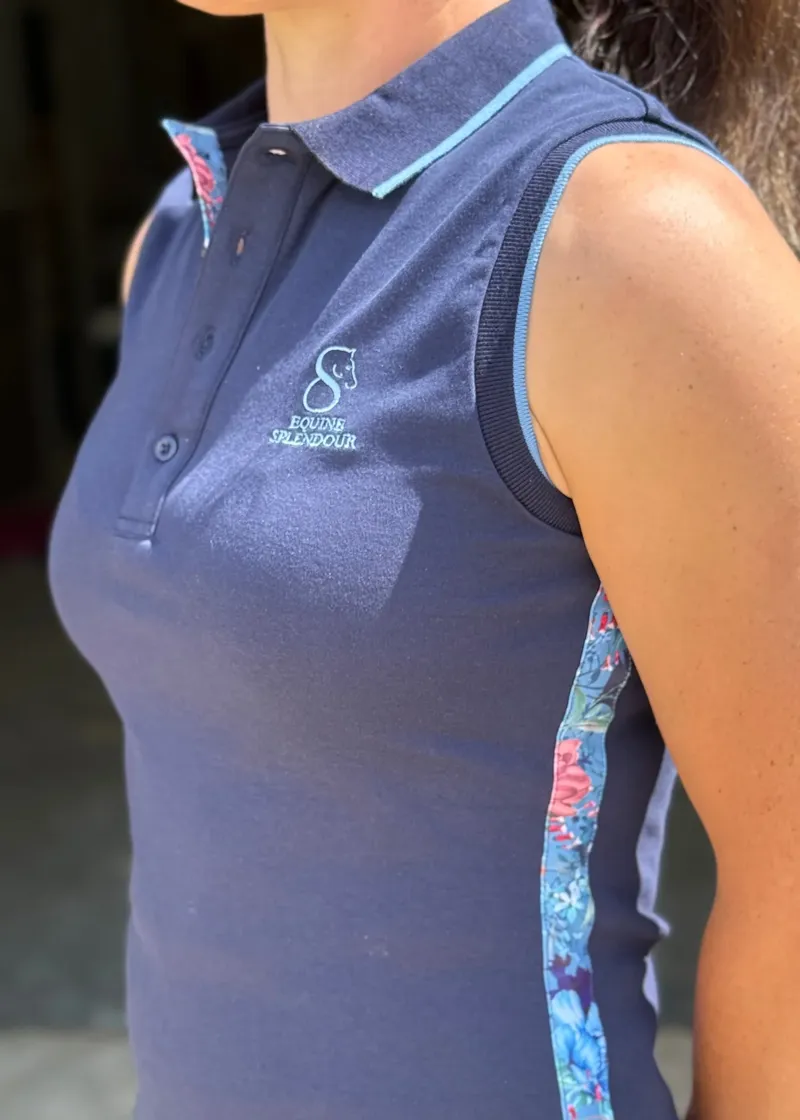 Equine Splendour Botanic Sleeveless Polo Shirt - Navy