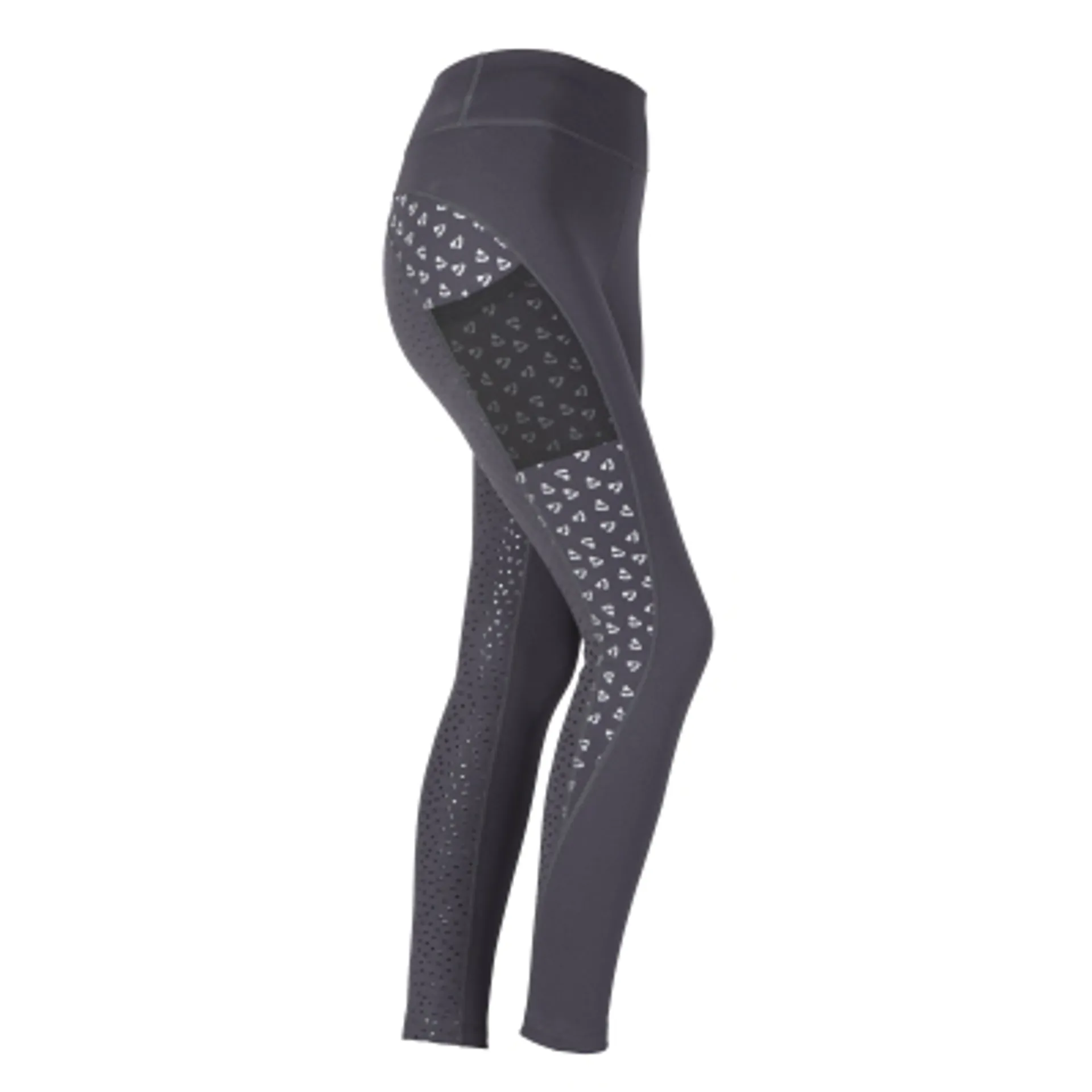 Coombe winter riding tights are designed to keep legs warmer and the rider more visible in low light through the winter. Smooth outer fabric is brushed on the inside to provide fleecy insulation; moisture management keeps skin dry and comfortable. The full length leg prints reflect light in low light conditions to make you extra visible. Further detail: reflective prints; smooth outer; fleecy inner; full silicone grip seat and legs; thigh phone pocket; aubrion prints