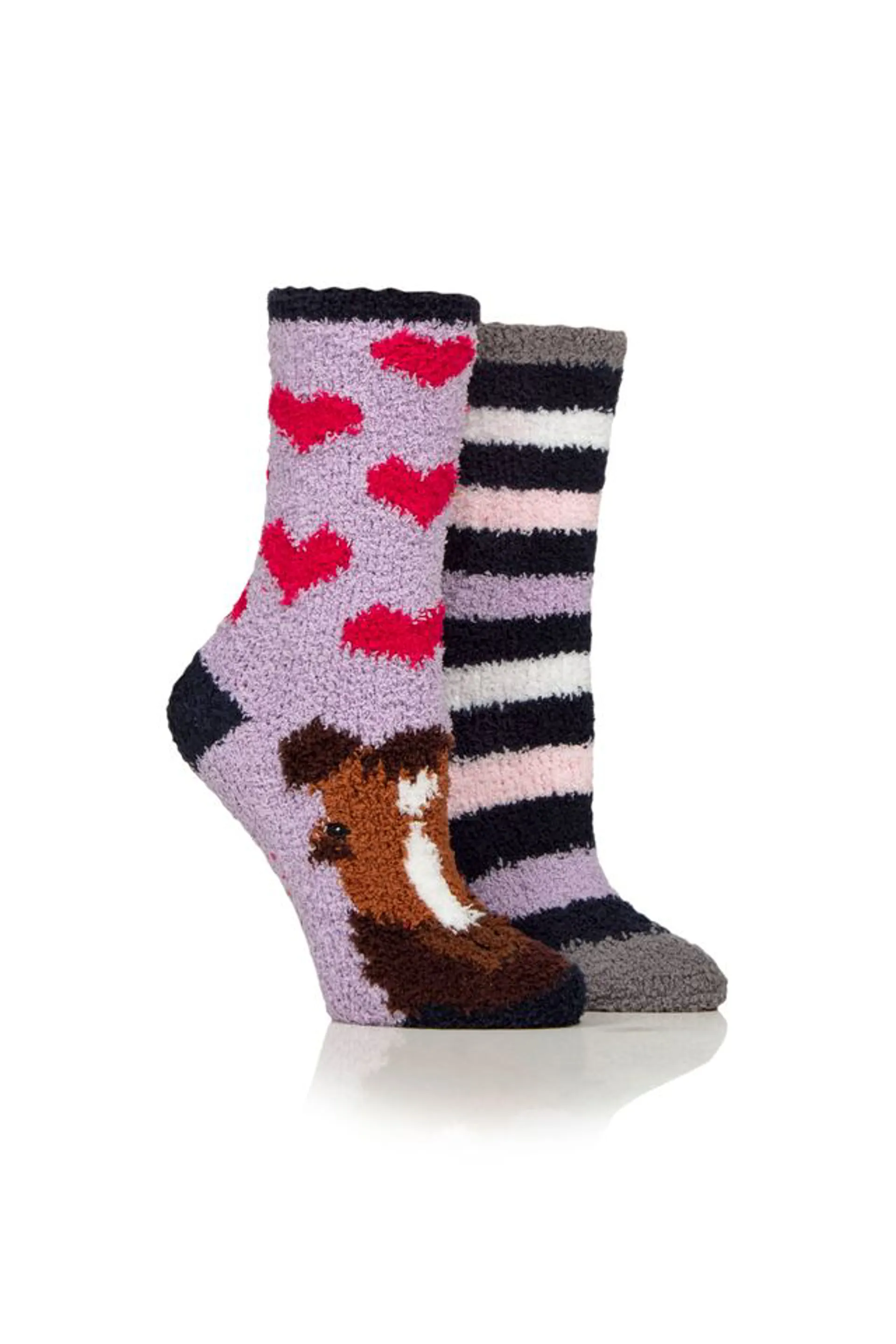 Wildfeet Fluffy Lounge Sock 2 pack - Ladies - Horse