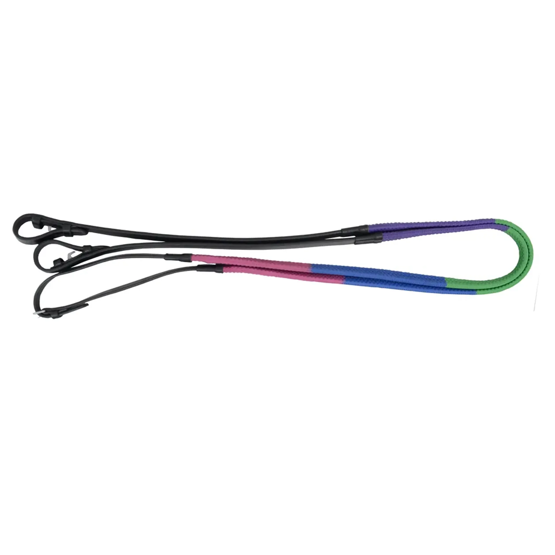 Hy Equestrian Rubber Covered Training Reins - Purple/Green/Blue/Fuchsia - 54" x 5/8"