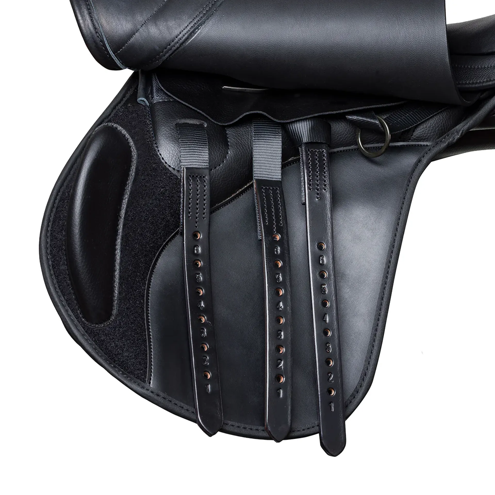 GP models are fitted with three girth straps. The point (front) strap and second strap are stitched, the third strap is moveable. This changeable girthing arrangement allows saddle stability to be optimised instantly.
